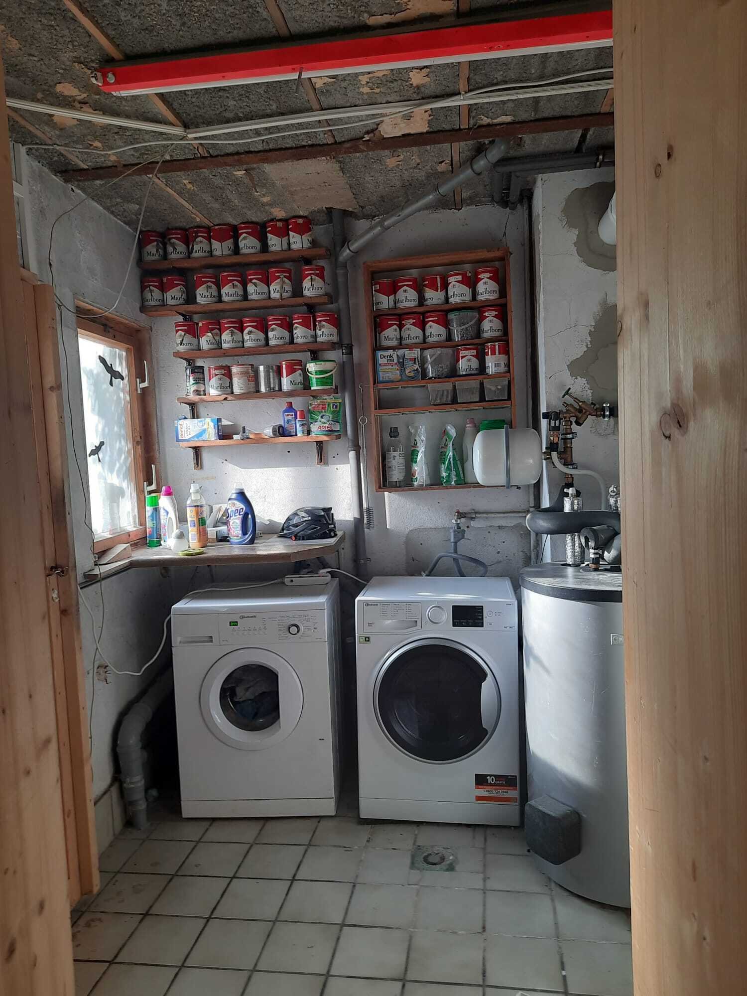 Die Kombination aus Fliesen- und Laminatböden verleiht den Räumen nicht nur eine moderne Optik, sondern bietet zudem pflegeleichte und strapazierfähige Oberflächen, die für eine angenehme Wohnatmosphäre sorgen.