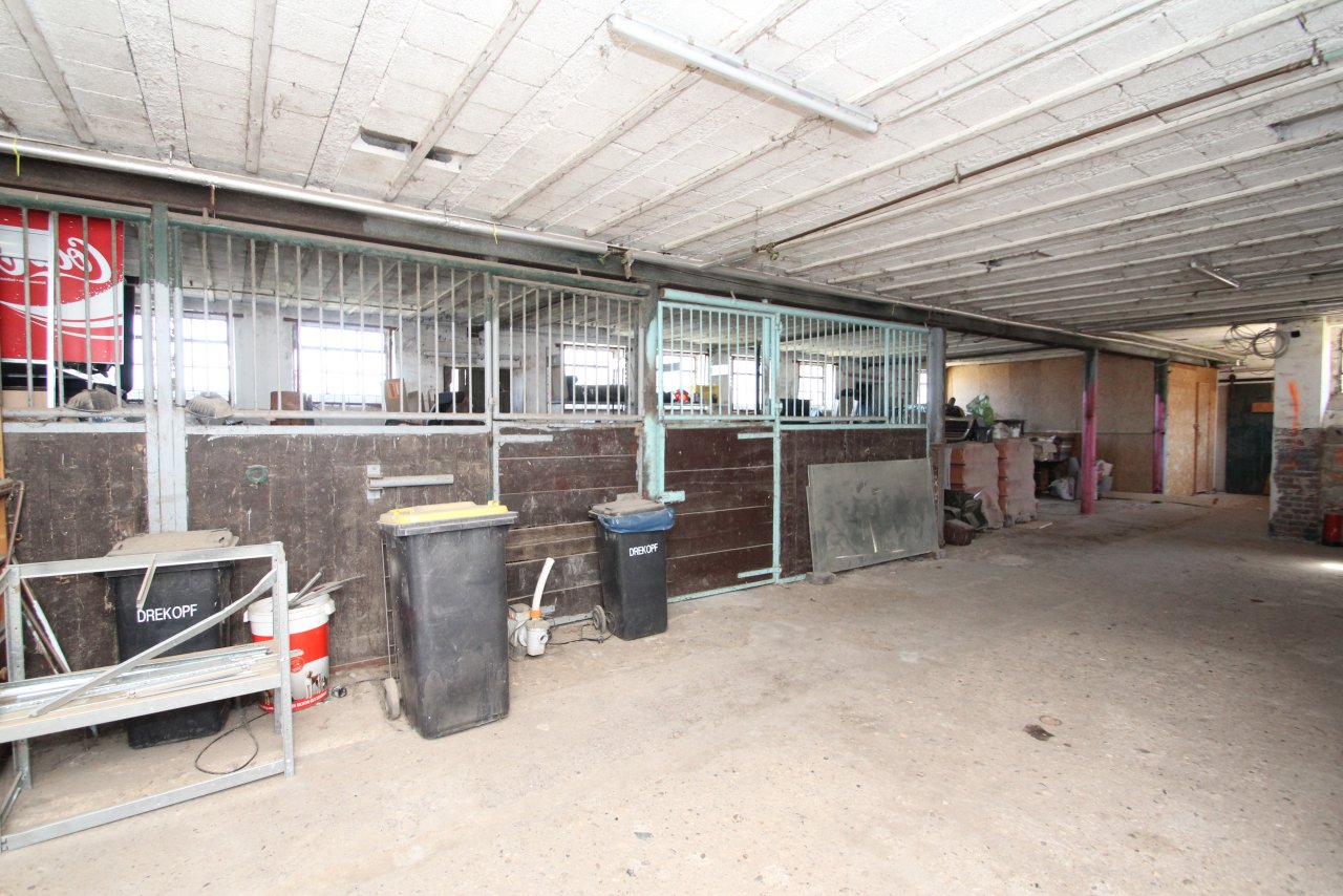 Der Großteil der Pferdeboxen wurde bis auf 2 Doppelboxen entfernt, Platz für ca. 15 Pferde ist vorhanden.