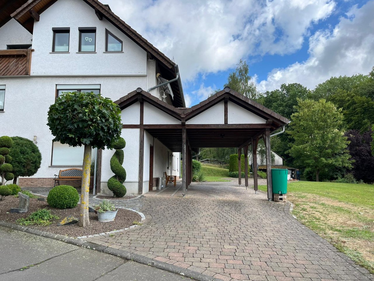 Erneuerungen: 1995 großer Carport mit Balkon, 2007 Duschbad + Toilette (2. Etage) 2009 neue Öltanks, Holzofen zur Unterstützung d. Heizung, 2010 PV Anlage 16,905 Kwp, 2015 Außenanlage mit Gabionen, 2017 Duschbad + Toilette